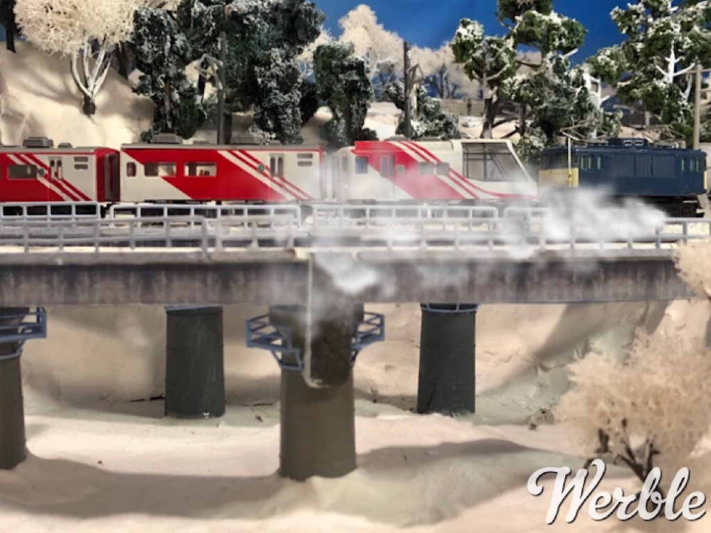 試運転してみると、やはり短縮した台枠に直付けしたカプラー高さなどに不具合があり、脱線したりしましたので調整を繰り返します。
