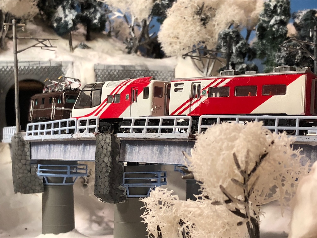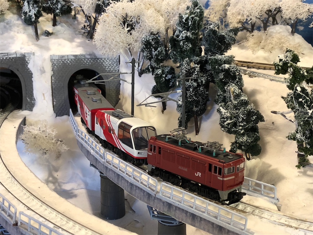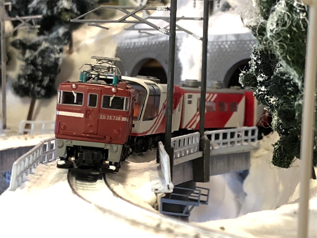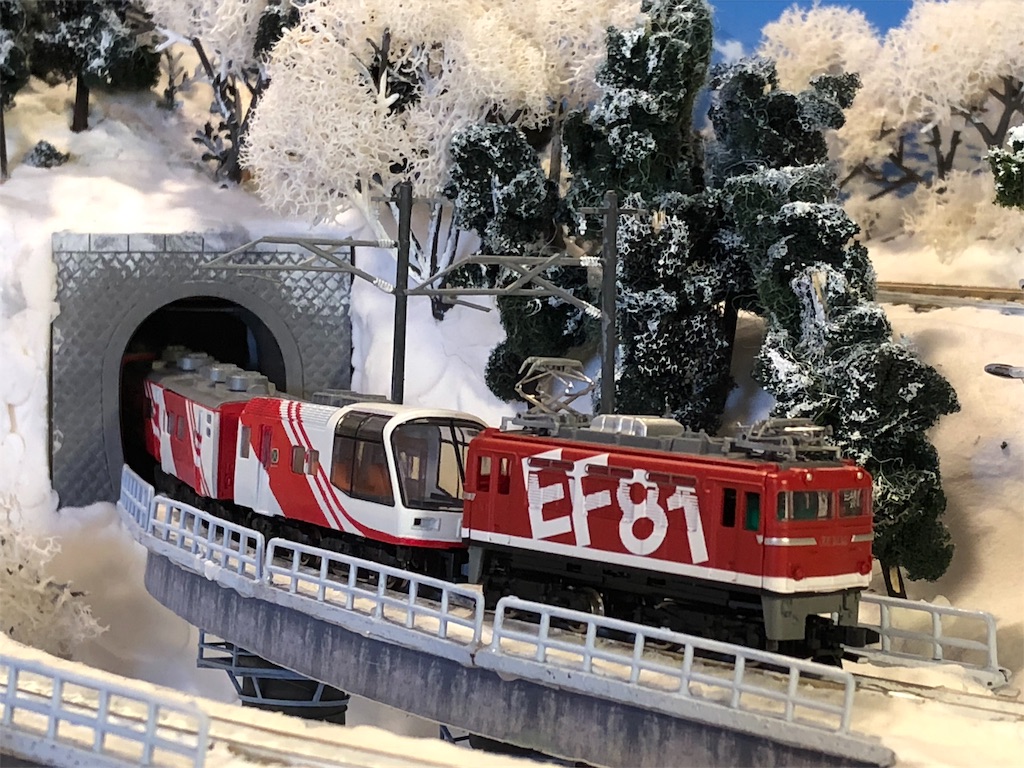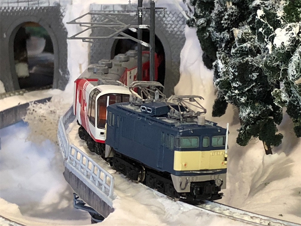 BトレのEF8195は、カトー製の客車に比べて随分色が濃いなあと思いましたが、こうやって牽かせてしまうとあまり気になりません。