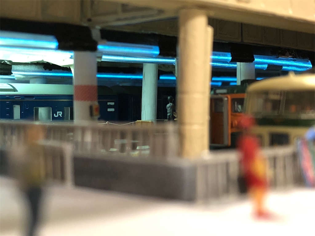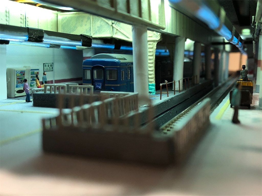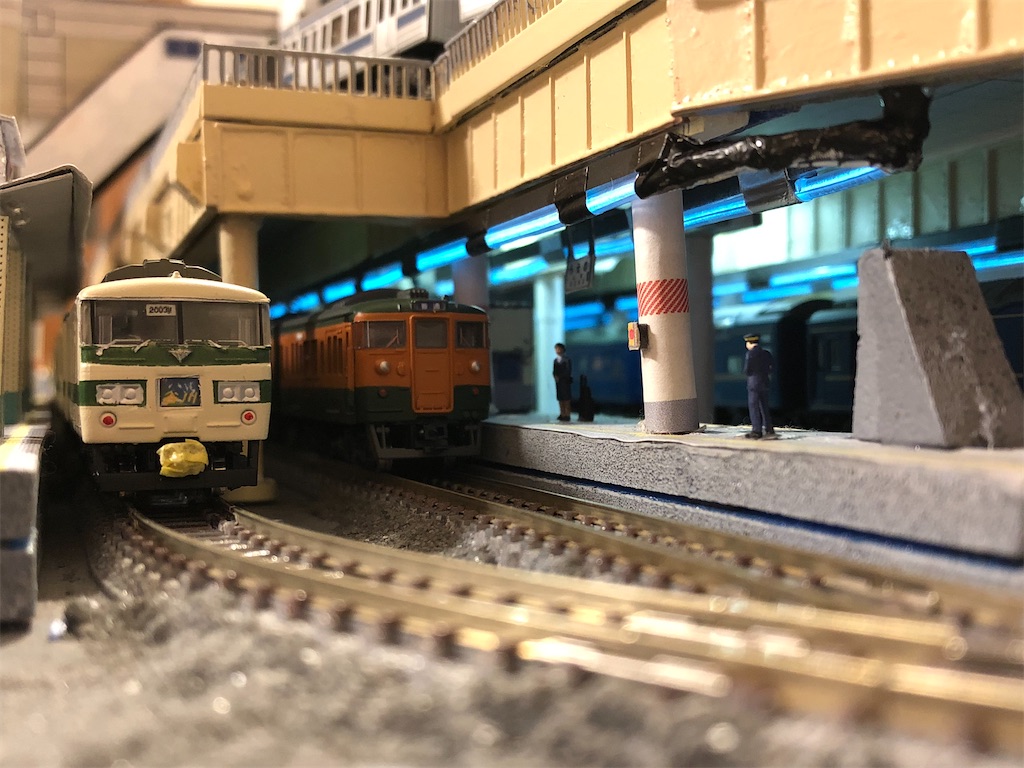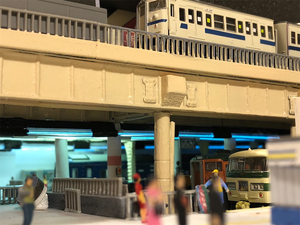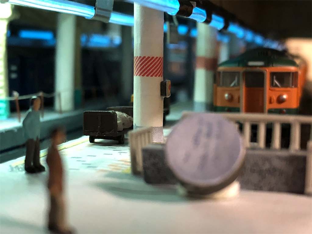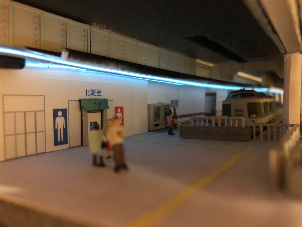 さて、今回の本題です。地平ホームをやるからには、どうしても12番線と15番線の二階建てを表現したくなります。すると、13-15番線は天井の下に隠れて暗くなってしまいます。そこに照明を灯します。