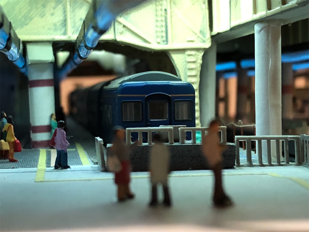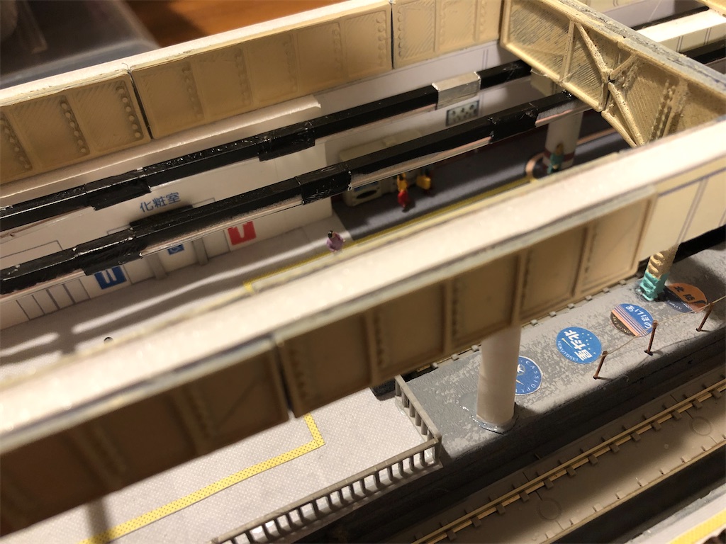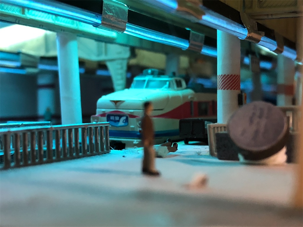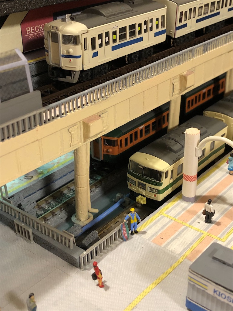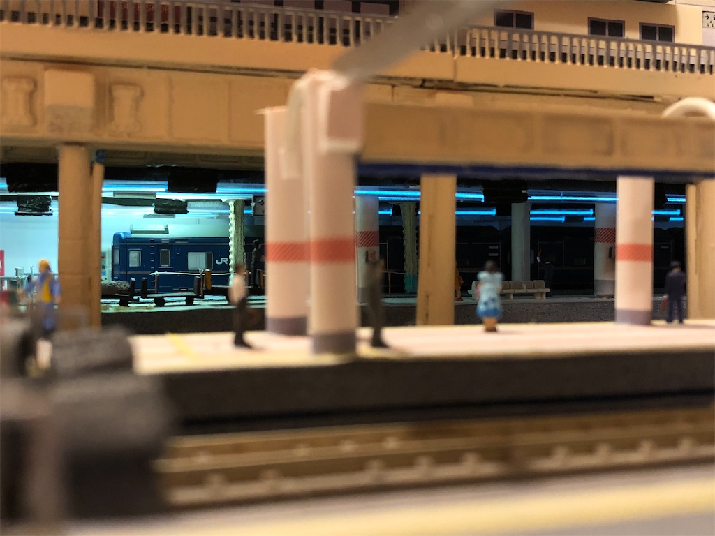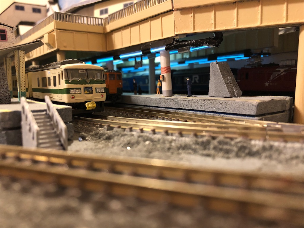 さて、今回の本題です。地平ホームをやるからには、どうしても12番線と15番線の二階建てを表現したくなります。すると、13-15番線は天井の下に隠れて暗くなってしまいます。そこに照明を灯します。