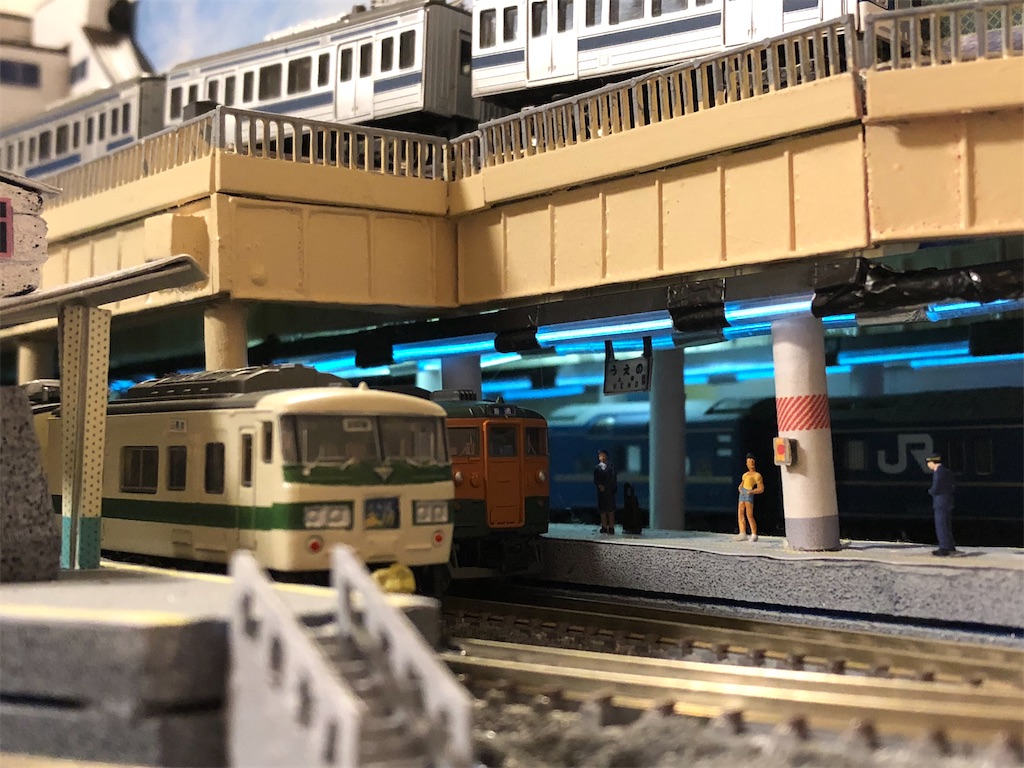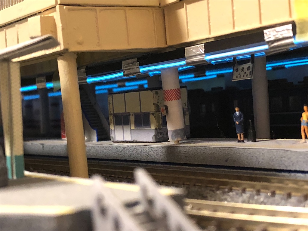 今回は暗い上野駅地平ホームに電飾を仕込みました。