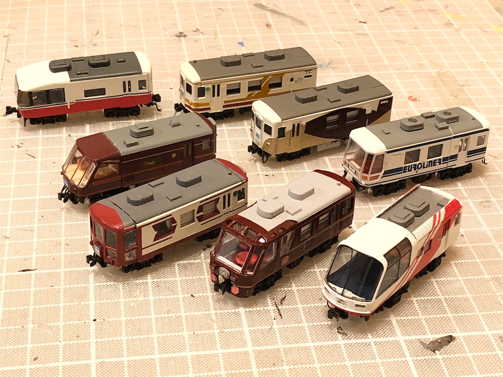 とりあえず、これまで作ったジョイフルトレインを並べてやる気を出します。