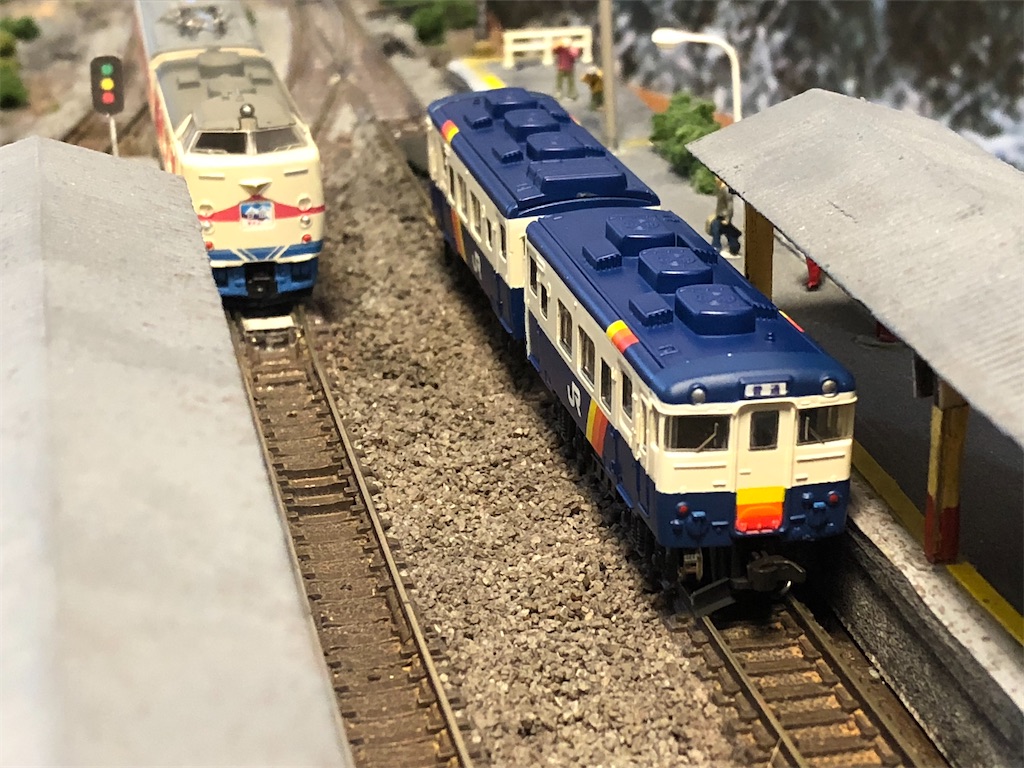 同じカラーの気動車として、キハ52の飯山色があります。これはキハ52新潟色とのセットですが、今でも新品が売っていることがあります。キハ52は好きなのですが地域色が活躍した晩年としてはだいぶ少数派になっていた感はあります。キハ40系や58系でセット販売してくれていれば、、、。