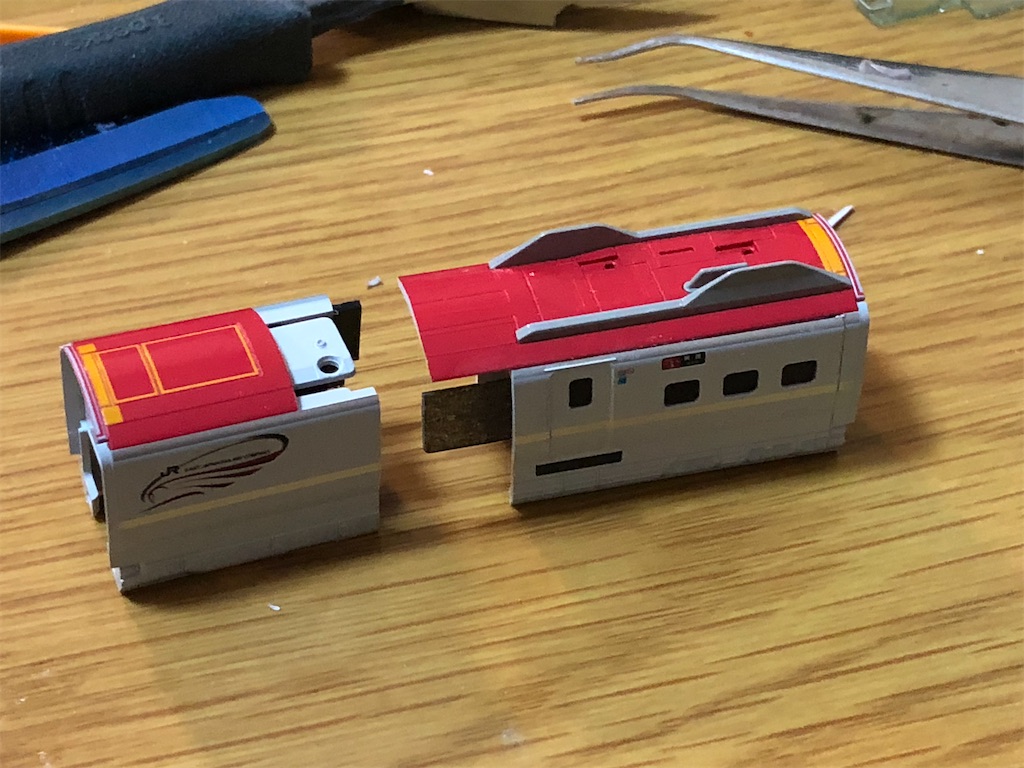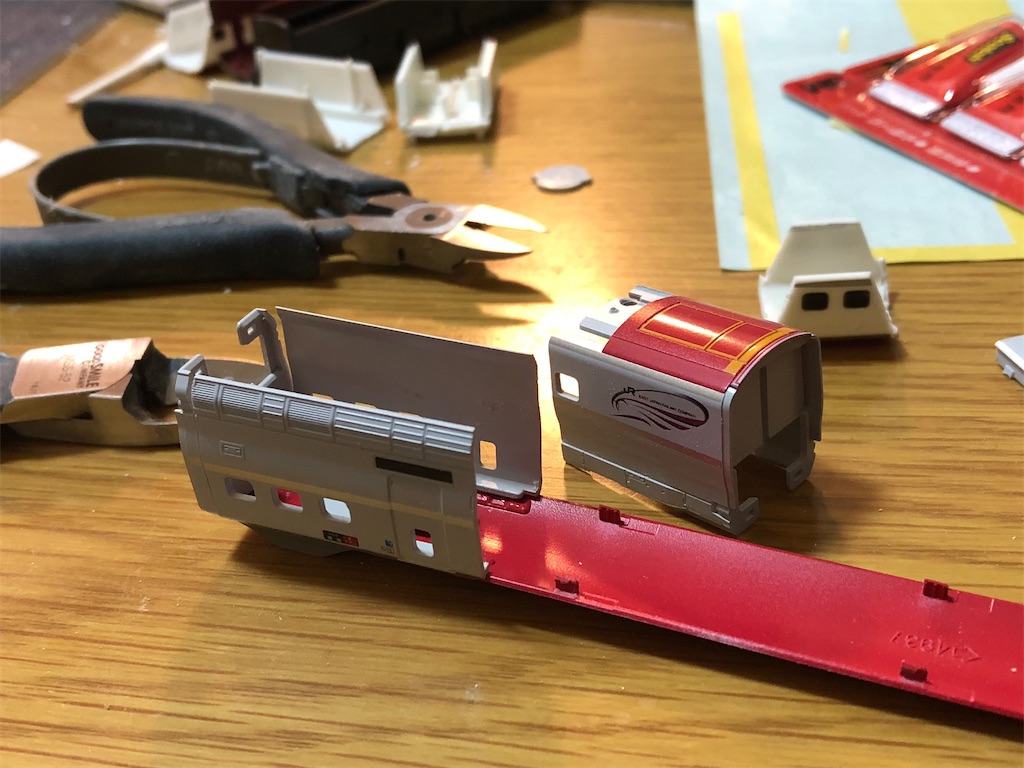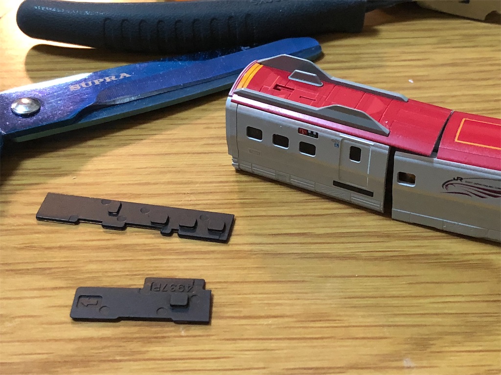 しかし、プラレールアドバンスの走行化、しかも機器カバーで床下が覆われたE6系は、なかなかに難工事で、前回展望室をスクラッチで作った「江戸」の方が楽だったんじゃないかと思うほどになってきました、、、。