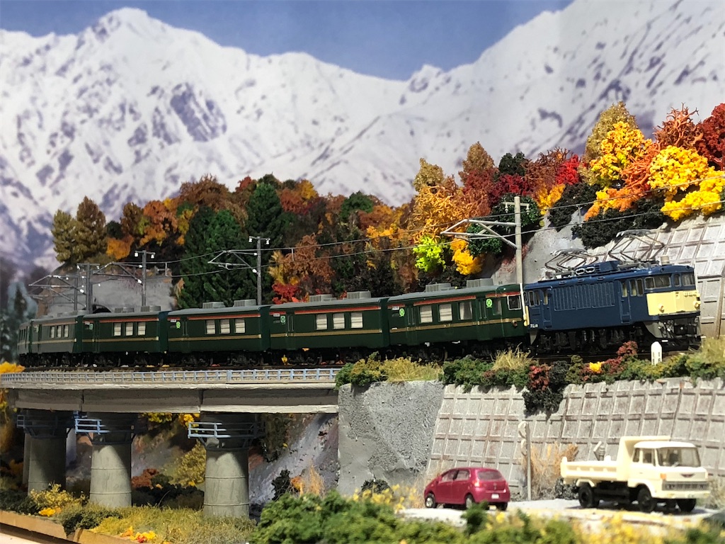 当初はただの12系塗り替えに近いものとして、適当に作り始めたのですが、金と緑のコントラストや、当時この列車を追いかけた熱気などを思い出すに連れ、これもまた当鉄道での大切な車両になっていきました。
