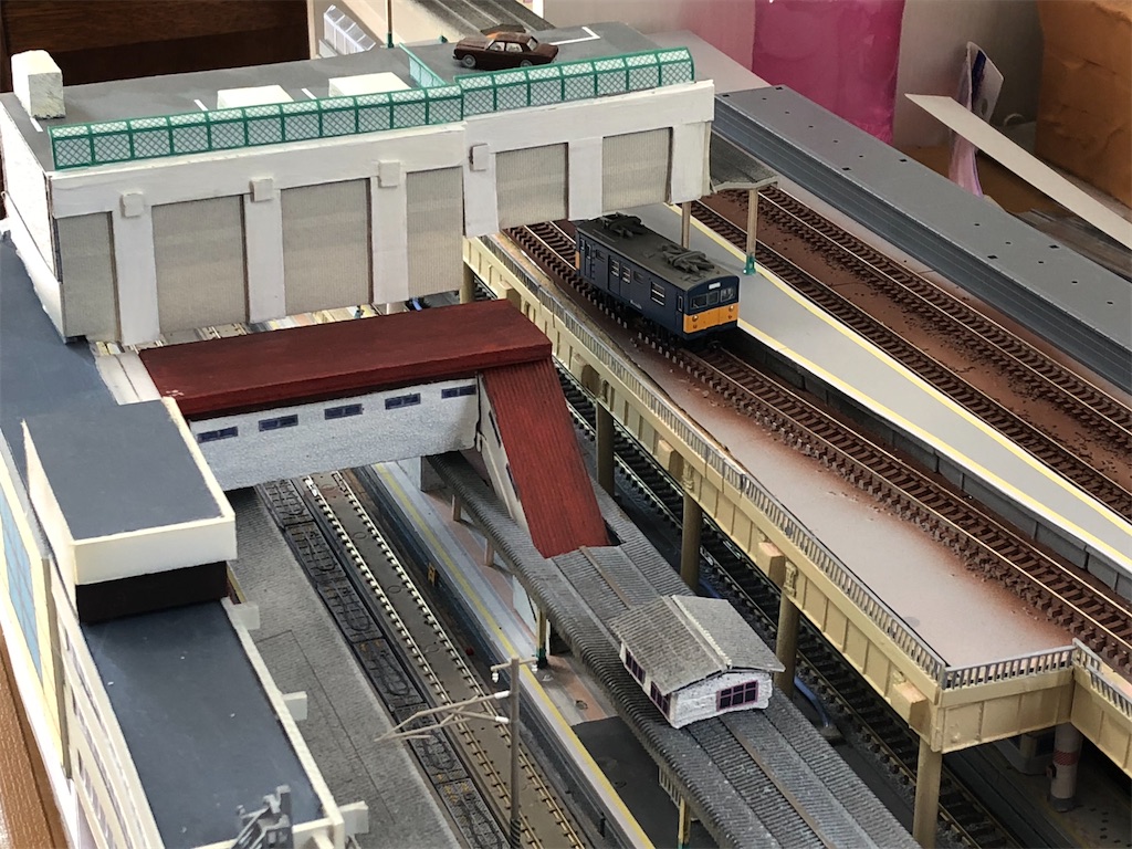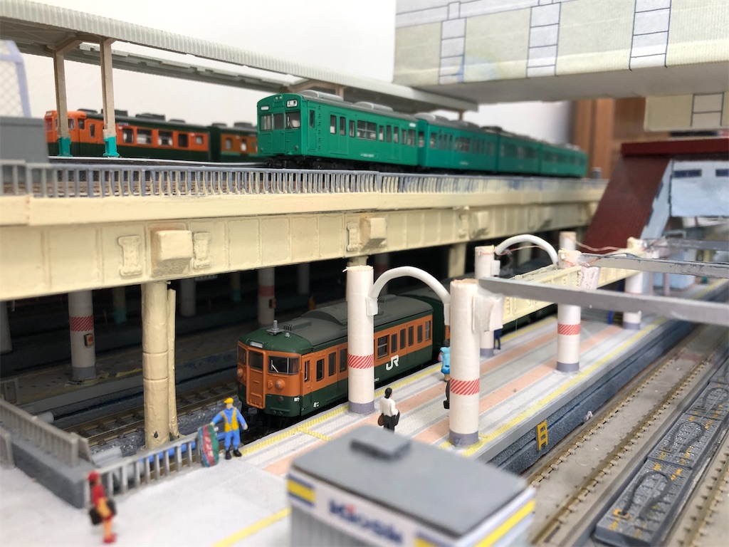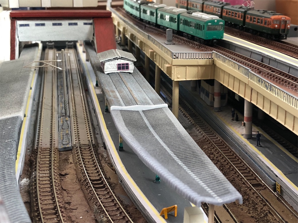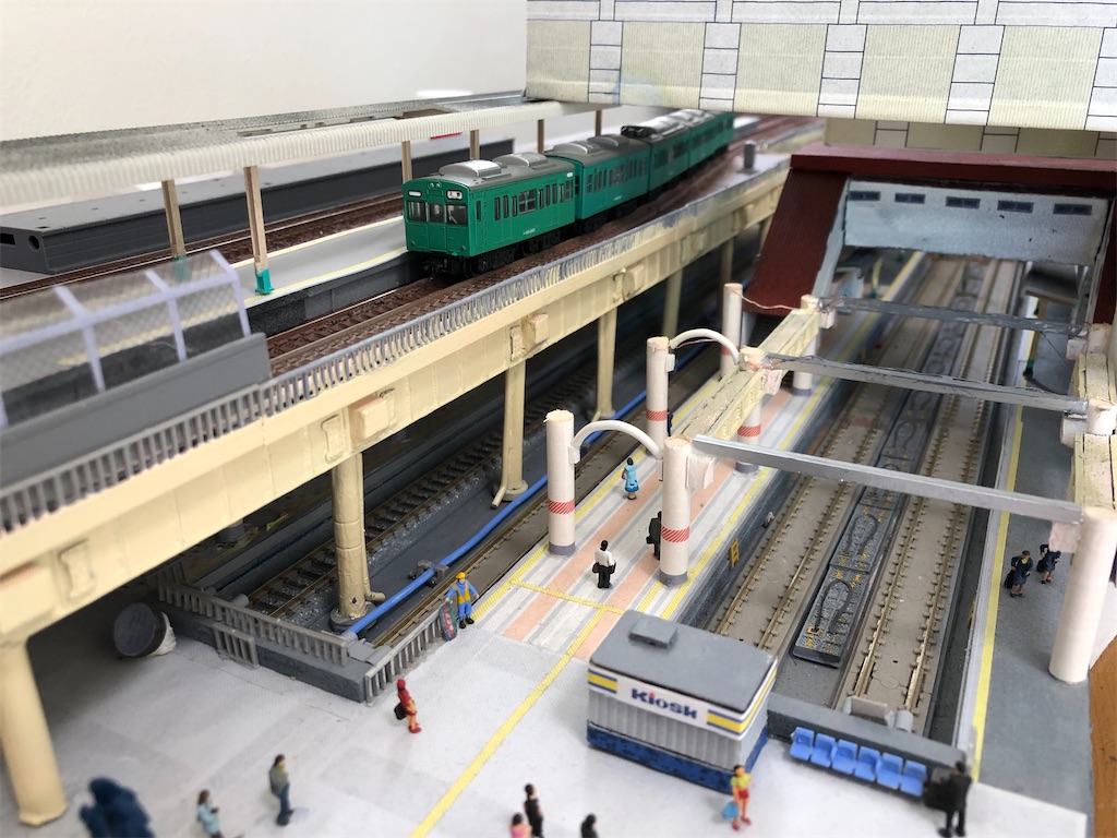 103系エメラルドグリーンの低運転台や1000番代はなかなかにレア化しています。当鉄道の役者としてはぜひ揃えたいものでしたが、N化して走らせるというより、このように脇役としての活躍が似合います。