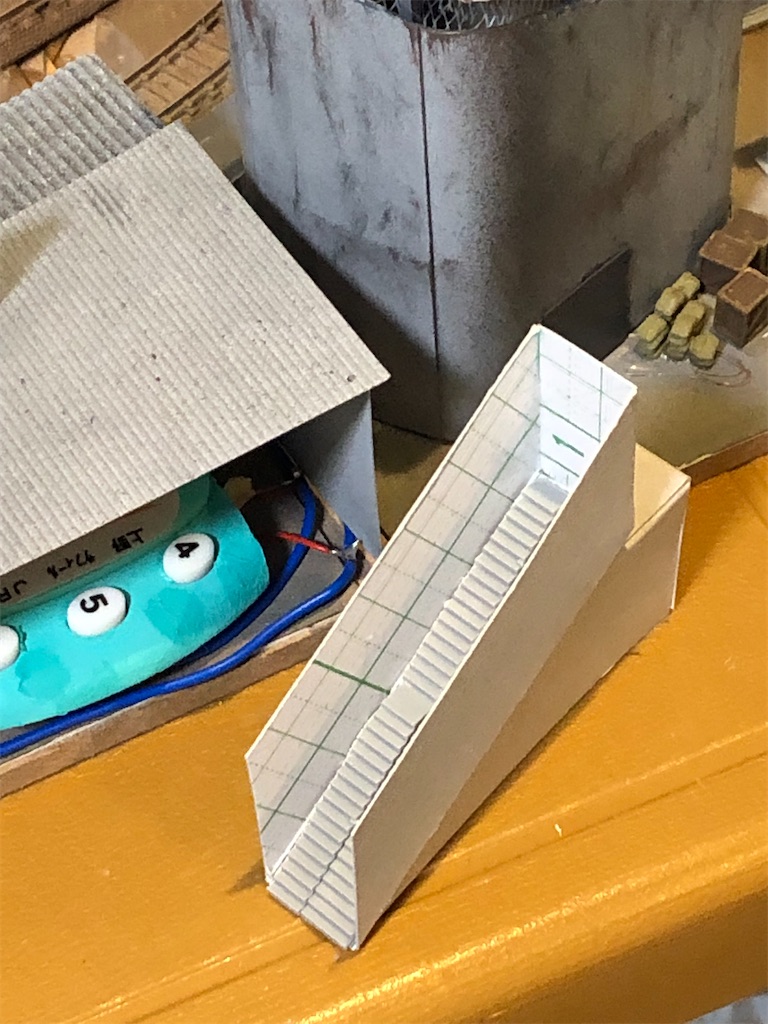12番ホームの公園口通路への階段を作りました。ここは階段下のベックスコーヒーが地平ホームから見上げた際に見えて印象的な場所です。