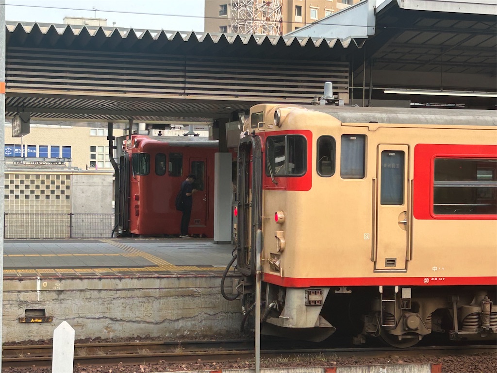 そして気動車のイメージと言えば自分はこれです。国鉄気動車急行色とタラコ色の2連。リバイバルカラー的再現ですが、国鉄型のキハ47には最高に似合います。