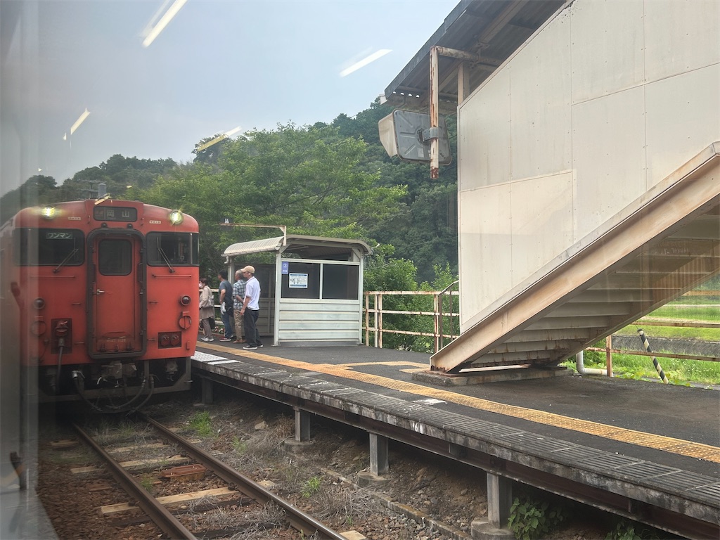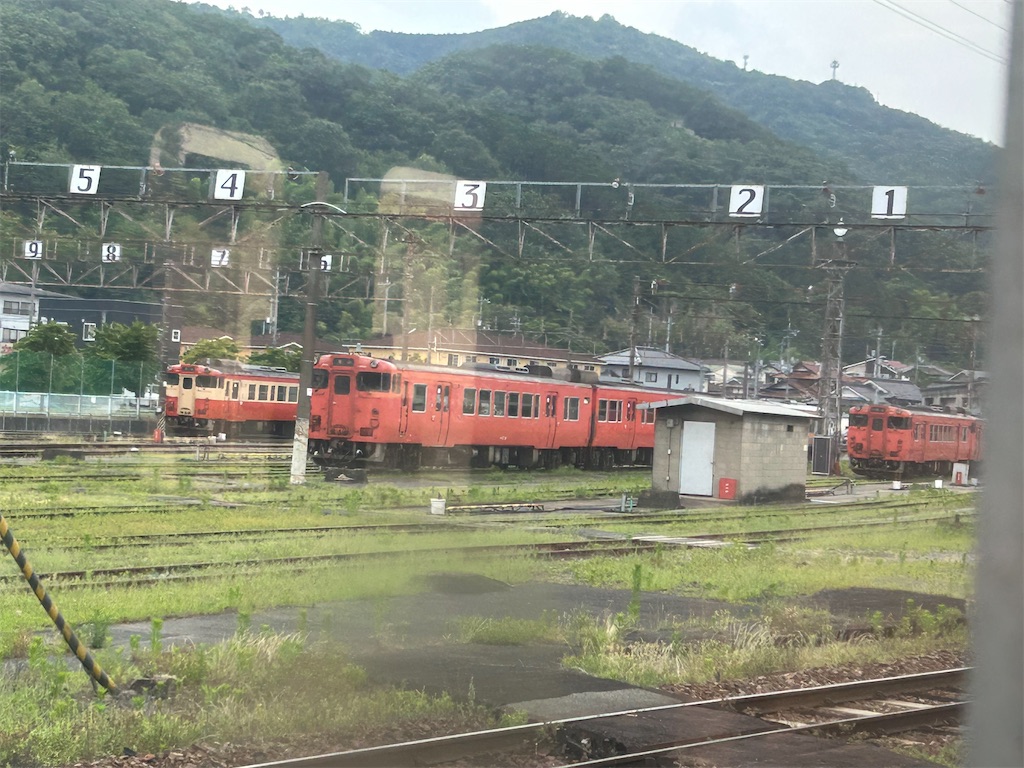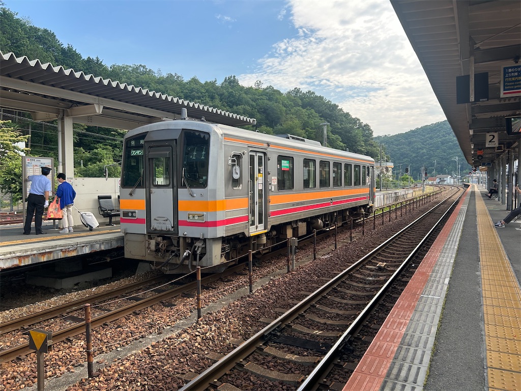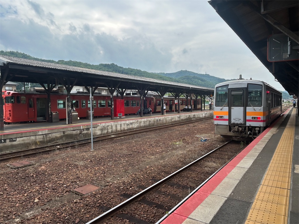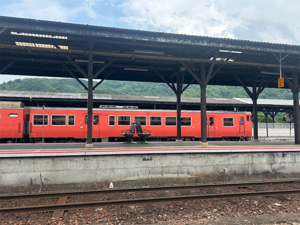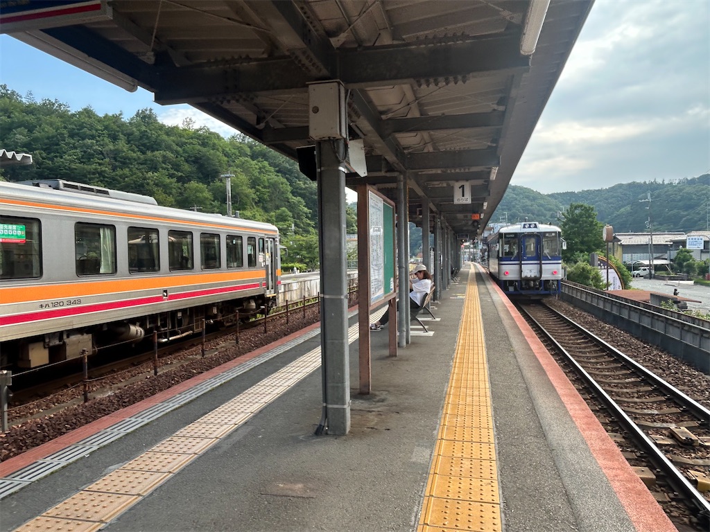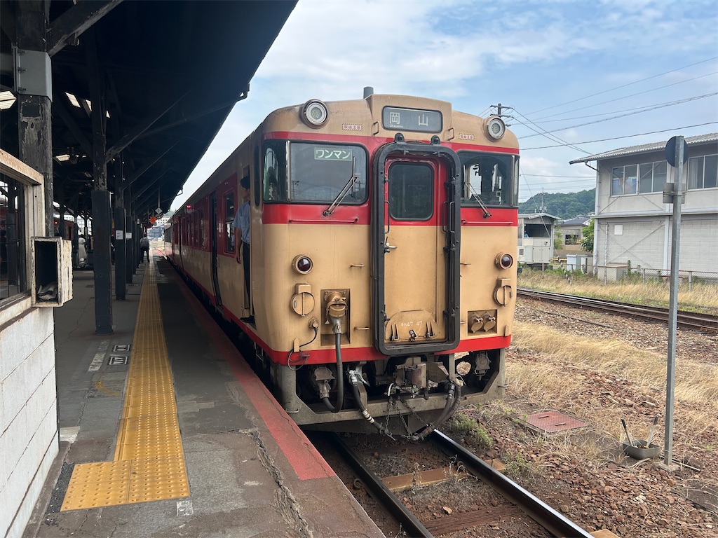 ここから姫新線に発乗車します。キハ120は、東のキハ100系よりもさらにだいぶ軽快な感じです。このあたりが自分にとっての「最新車両」ですが、デビューからかなり時間が経っています。