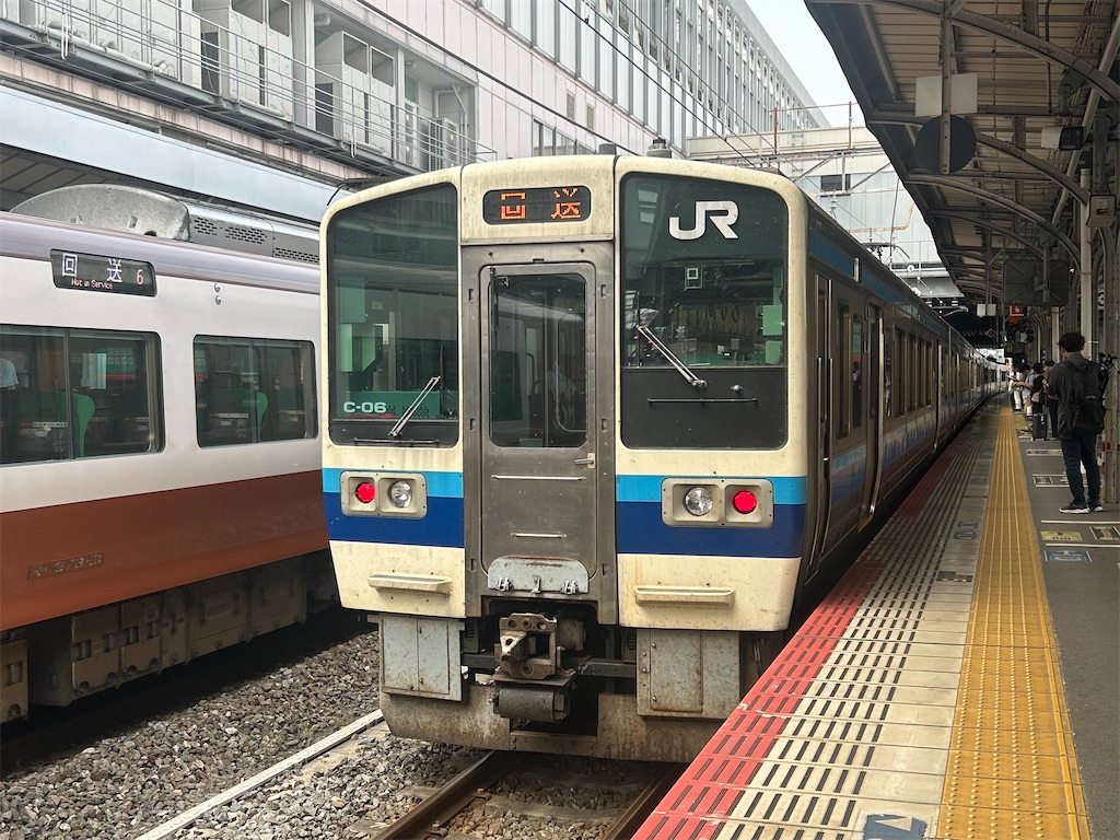 ホームに並ぶ国鉄色に挟まれるワクワク。